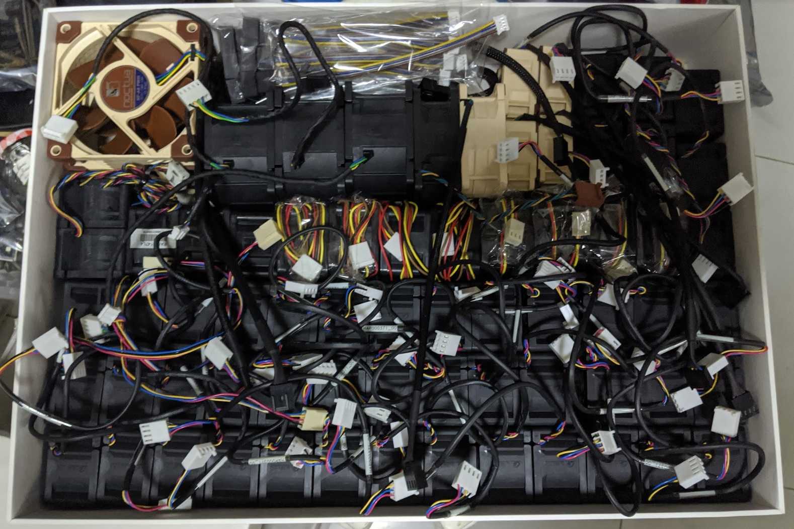 The other thing that bothered me were the fans that were installed in the PSU modules. They should be really good fans but they produced a high-pitched whine when running. They were replaced with the same Delta 40mm fans that I am using for the server, and I've definitely noticed that it is much quieter now. The connectors on the main board were using the 4-pin VGA fan connector, and I didn't want to cut the normal 4-pin fan connectors off, so I bought some adapters from AliExpress.